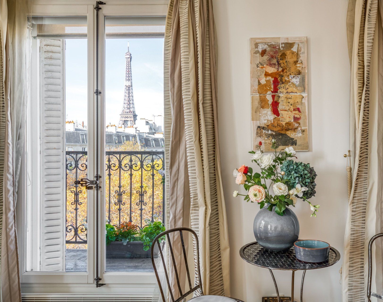 - integrate the different pieces of wrought iron furniture, which echo the Eiffel Tower without obtaining a result that is too cold