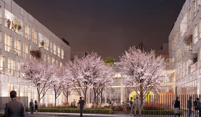 Hall d'Entrée / Lobby / Salle réunion / Bureau CEO / Equipes vente / Boutique / Bar.